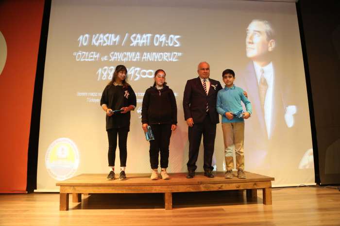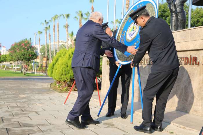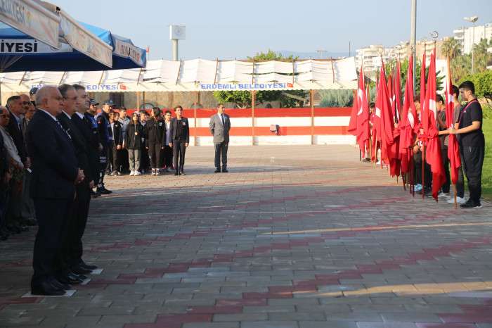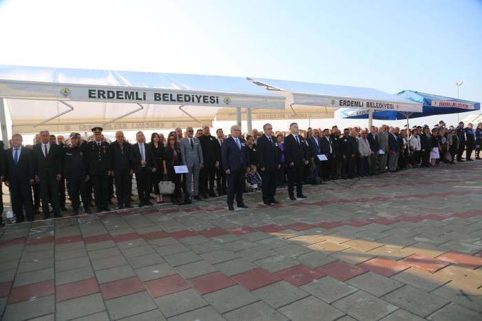 Dr. Devlet Bahçeli Sahil Bandı tören alanında Atatürk Anıtı’na çelenk sunma töreni yapıldı. Atatürk Anıtı’na çelenklerin sunulmasının ardından saat 09:05’te sirenlerin çalmaya başlaması ile Büyük Önder Gazi Mustafa Kemal Atatürk’ün manevi huzurunda 2 dakikalık saygı duruşunda bulunuldu. Ardından İstiklal Marşı’nın okunması bayrak yarıya indirildi. Buradaki törenin ardından Erdemli Belediyesi Kültür Merkezi’ndeki programa geçildi. Buradaki programda Atatürk’ü anlatan şiirler okundu, şarkılar söylendi. Programın sonunda öğrencilere hediyeler takdim edildi. Öten yandan programa Erdemli Kaymakamı Aydın Tetikoğlu, Erdemli Belediye Başkanı Mükerrem Tollu, Cumhuriyet Başsavcısı Veli Gündüz , İlçe Jandarma Komutan Yarbay Erhan Erdoğan, İlçe Emniyet Müdürü Ali Kemal Arda, Gaziler, Kurum Amirleri, Siyasi Parti Temsilcileri, STK Temsilcileri, Oda Başkanları katıldı.
